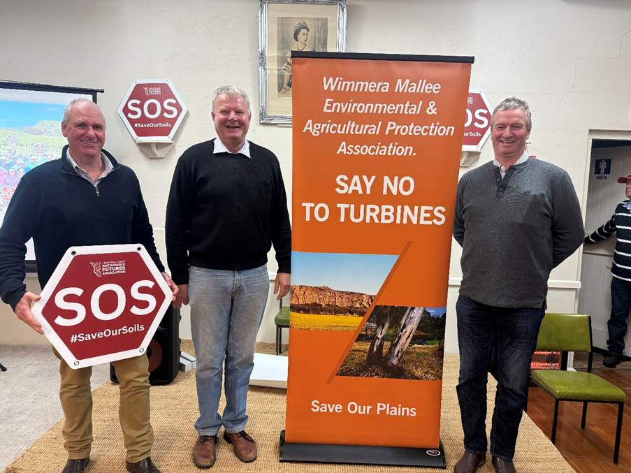 Pic: LCSFA chair with Wimmera Mallee Environmental and Agricultural Protection Association members Ross Johns and Andrew Weidemann.